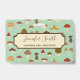 Un patrón de hongos sobre verde apagado. El nombre y la profesión están en una caja de crema en la parte delantera.