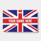 Insignia de nombre personalizado con bandera británica de Union Jack. Etiquetas de nombres plásticos disponibles con clip on y opción lanyard. Personalizable. Añadir una foto al dorso opcionalmente. Identificación útil para oficina, trabajo voluntario, eventos, reunión, delegación, equipo deportivo, grupo, festival musical, fiesta y más. orgullo inglés. Bandera del Reino Unido, Gran Bretaña.