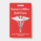 Pase de corredor de oficina de enfermería escolar hecho en rojo con gráficos de tono plateado de un símbolo médico. Personalice el texto personalizado para leer lo que desee.