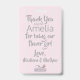 Personaliza la insignia de agente de patrulla de pétalos con nota de agradecimiento y marco en forma de corazón con acentos florecientes para la foto de tu niña de las flores.