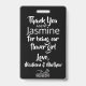 Personalice la insignia de agente de patrulla de pétalos con nota de agradecimiento y área de foto para su niña de las flores.