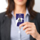 Una placa de seguridad de identificación de la foto de un empleado de la marina que se puede personalizar fácilmente con el nombre y el logotipo de su empresa, así como el nombre, la foto, el título de trabajo y el número de identificación de su empleado, la insignia tiene un fondo marino con un salto blanco por el medio que simboliza la trayectoria ascendente de su negocio. Al fondo hay espacio para la información de su empresa. Un distintivo profesional para uso de oficina o de venta al por menor. Sin orden mínima.