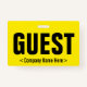 Este diseño de placa básica incluye el mensaje "INVITADO", y un nombre de empresa de personalizable u otro mensaje de personalizado. Una insignia como esta podría ser usada tal vez para indicar que una persona es un invitado o visitante conocido y autorizado en un negocio o lugar de trabajo. [~Z0000307]