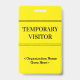 Las características del este diseño elegantes de la insignia el mensaje "VISITANTE TEMPORAL", y el nombre de compañía adaptable o el otro mensaje de encargo. Una insignia como esto se podría utilizar para indicar que se permite a un visitante o una huésped en un lugar de trabajo estar allí. [~Z0000307]