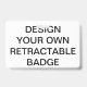 El personalizado imprimió personalizó 3,38" x 2,13" INSIGNIA RETRACTABLE del PAISAJE CON la plantilla del espacio en blanco del CLIP. El diseño, crea, hace sus los propios. Su foto, imagen, texto, logotipo, gráficos en borde-a-borde a todo color imprime en el frente y el el trasero, horizontal o vertical. Hecho del plástico del PVC, el artículo, no se descolorará ni rasgará. Retractable, clip metálico, collar del acollador, o apenas insignia. Mejor para la oficina y uso del idnetity del negocio, expos, exposiciones, conferencias y acontecimientos corporativos.