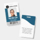 Insignias de diseño profesional moderno con patio para empleados, trabajadores sanitarios, personal escolar, personal de oficina y más. Personalizado con el logotipo y el nombre de la empresa junto con el nombre, el título y la identificación del empleado. El código de barras del empleado se puede agregar en la parte inferior de la tarjeta. Se puede escribir información adicional en el reverso de las tarjetas. Estos identificadores están disponibles en 20 variantes de color para elegir.