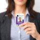Insignias de diseño profesional moderno con patio para empleados, trabajadores sanitarios, personal escolar, personal de oficina y más. Personalizado con el logotipo y el nombre de la empresa junto con el nombre, el título y la identificación del empleado. El código de barras del empleado se puede agregar en la parte inferior de la tarjeta. Se puede escribir información adicional en el reverso de las tarjetas. Estos identificadores están disponibles en 20 variantes de color para elegir.