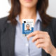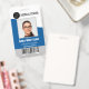 Insignias de diseño profesional moderno con patio para empleados, trabajadores sanitarios, personal escolar, personal de oficina y más. Personalizado con el logotipo y el nombre de la empresa junto con el nombre, el título y la identificación del empleado. El código de barras del empleado se puede agregar en la parte inferior de la tarjeta. Se puede escribir información adicional en el reverso de las tarjetas. Estos identificadores están disponibles en 20 variantes de color para elegir.