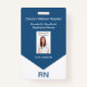 Tarjetas de identificación de foto médica para profesionales médicos con plantilla de fotos del personal y detalles que puede personalizar en línea. Creado para una oficina de un Médica, un hospital o un centro médico, o para entrar a la clínica. Presentado como una tarjeta de identificación de enfermero registrado, pero puede utilizarse para cualquier personal médico, como un médico, un profesional de enfermería o un documento de identidad profesional de salud en el hogar. Una impresión de doble cara para que su información se muestre sin importar el lado de la insignia.