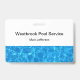 Sencillas pero modernas tarjetas de trabajo de los empleados del servicio de piscina con colorido gráfico de agua azul para representar el agua de la piscina y el espacio, puede añadir el nombre de su empresa y el nombre profesional reemplazando las plantillas de texto por sus propios nombres. Diseñado para un servicio que mantenga, reaparezca o instale piscinas.