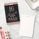 Las invitaciones de acceso total VIP Sweet 16 con brillo rosa y negro dorado personalizadas pueden ser personalizadas con el nombre de cada invitado o crear un monograma para la cumpleañera de dieciséis años. Los detalles de la invitación de la fiesta están impresos en la parte trasera con fuente sans-serif moderna y fuente cursiva de caligrafía con florituras para un look moderno y chic.