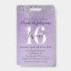 Una manera inteligente de invitar a sus invitados a su dulce fiesta de 16 años. Estas invitaciones para tarjetas VIP dulces de 16 caracteres dulces de lavanda personalizado impresionarán a sus huéspedes. El diseño presenta un falso lavanda morado metalizado con purpurina plateado y un moderno tipo de letra escrito a mano. Personaliza fácilmente la parte delantera y trasera de esta plantilla para tu dulce fiesta de 16 años. Los diseños son ilustraciones/gráficos impresos planos. No se utiliza ningún metalizado cepillado real. Viene en una variedad de colores. Diseñado para ti por Blackberry Boulevard.