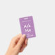 Bright lilac púrpura / lavender "Pregúntame" insignia para voluntarios, profesores, docentes, guías, organizadores de eventos para eventos especiales, como bodas, ferias de artesanía, espectáculos caseros y de jardín, eventos caritativos, negocios y funciones corporativas. El color de la tipografía es marfil pálido, lo que le da a esta insignia un aspecto moderno. ¡Fácil de personalizar!