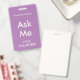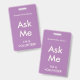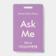 Tarjeta De Identificación Lilac Purple pregúntame distintivo para voluntario