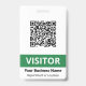 Insignia vertical de visitante con código qr, VISITOR en letras blancas limpias contra franja verde, y su nombre de negocio y departamento o ubicación. Todo el texto es personalizable. Insignia de visitante de código QR en blanco y verde para su negocio.