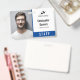 Tarjeta de identificación de empleado con un diseño minimalista limpio en azul, negro y blanco. Añada una foto del empleado junto con su nombre y profesión. Personalice más con el logotipo de su empresa.