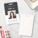 Personalice estas insignias verticales con una foto y nombre del empleado, junto con dos líneas de texto personalizado adicional para el número de identificación del empleado, cargo o título, ubicación u otros datos clave, adornadas con una ilustración de una llave maestra vintage de falso foil de cobre. Perfecto para agentes inmobiliarios, empleados de empresas de gestión de propiedades o cualquier persona en el sector inmobiliario. Campo de texto personalizado adicional ubicado en la parte posterior para información de devolución u otros detalles.