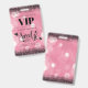 Haz tu Sweet 16 extra especial con insignias VIP para tus invitados! Esta divertida insignia VIP incluye un fondo de bokeh rosado con un borde de purpurina negro digital en la parte superior e inferior con pequeños corazones y las palabras "Sweet 16" llenas con un efecto purpurina negro digital. © 2021 | El olivo visto™ | Todos Los Derechos Reservados.