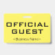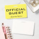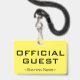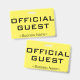 Este diseño de placa minimalista incluye el mensaje "INVITADO OFICIAL", y el nombre de una empresa de personalizable u otro mensaje de personalizado. Una insignia como esta podría ser usada para indicar que una persona es un invitado o visitante conocido y autorizado en un negocio o lugar de trabajo. [~Z0000307]