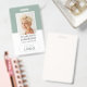 Crea un aspecto profesional con esta moderna placa de identificación personalizada. Una plantilla sencilla y elegante con su foto de identificación, nombre, título de trabajo y logotipo de la empresa. En la parte posterior, tiene la opción de agregar más detalles y un código QR. Simplemente agregue su URL web y se generará automáticamente un código QR. Este diseño minimalista y de moda es perfecto para muchos lugares de trabajo y profesiones diferentes, como personal de oficina, vendedores minoristas, estilistas de moda, maquilladores, salones de belleza, empleados de tiendas, pequeñas empresas, etiquetas de nombres de conferencias y más! Colores impresos: verde sabio suave y blanco, de tipo gris.