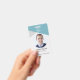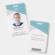 Esta insignia es una forma moderna y profesional de identificar a los empleados en el lugar de trabajo. Está diseñado con una paleta de colores azul y gris y cuenta con un número de identificación único y una foto para una fácil identificación.