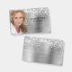 El purpurina de plata brillante de Girly faux resalta sobre un falso Relieve metalizado gris plateado plateado plateado. Añadir una foto, nombre, título u otro texto de un empleado y un logotipo de la empresa. También hay espacio para un logotipo rectangular. El purpurina y el Relieve metalizado se crean con gráficos digitales que imprimen como tu foto en la insignia del empleado.