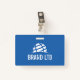 Una insignia para su negocio o evento añadiendo su logotipo, nombre comercial y cualquier otro detalle que desee mostrar. El color de fondo se puede personalizar.