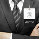 Simple insignias de visitante amigables con el presupuesto en una plantilla de logo económica con diseño a dos lados que puedes usar para reemplazar nuestra plantilla de logo con el logo o gráfico de tu propio negocio. Se utiliza para entregar a visitantes y huéspedes a un negocio, lugar o convención.