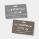 Este respetable diseño de placa presenta el mensaje "VISITOR AUTORIZADO", y el nombre de una empresa de personalizable u otro mensaje personalizado. Una insignia como esta podría ser usada para indicar que un visitante o invitado en un lugar de trabajo está permitido de estar ahí. [~Z0000307]