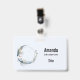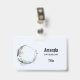 Tarjeta De Identificación Luna Creciente Azul con Flores Blancas