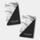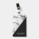 Tarjeta De Identificación Mármol Blanco Monogramado Y Grano Negro