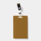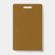 Esta imagen muestra una etiqueta de identificación rectangular en blanco con un acabado marrón terroso sólido, presentada en un estilo de estudio limpio y profesional.