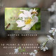 Elegante etiqueta Master Gardener con flores y abejas. En el reverso aparece una cita de Audrey Hepburn sobre los jardines.