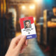 Tarjeta De Identificación MEDIA PASS - Foto DNI Insignia Roja/Azul