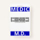 Médica de la medicina azul moderna o placa de identificación de la enfermera voluntaria. Agregue cualquier nombre de tipo de respondedor y código de barras.
