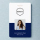 Designed for a fresh, contemporary look. Featuring a Navy Blue ID clean minimalist layout, this personalized badge showcases your photo and text in a stylish, professional way.