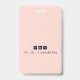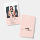 Una placa de identificación minimalista moderna para un consultor de negocios u otro título profesional. Una tipografía simple y elegante para tu nombre y título con dos fondo rosa melocotón tomocotón y blanco. Reemplace esta foto de ejemplo con su propia foto profesional. Añade tu cuenta de medios sociales a la parte posterior de la insignia.