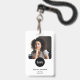 Insígnia mínima de identificación de empleado con código QR. El diseño también incluye el logotipo de la empresa con nombre y título en la parte frontal. El nombre de su empresa y detalles, incluyendo el número de identificación del personal, se pueden agregar en la parte posterior de la tarjeta.