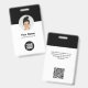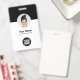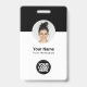 Personalice fácilmente este distintivo de nombre de empleado Minimalista de la empresa del Personalizado con foto, código Qr de escaneo o código de barras de escaneo y logotipo de la empresa. Un sencillo diseño de negocios con fotos redondeadas, con colores modernos en blanco y negro, personalizable completo en tamaño frontal y trasero, fuentes sans-serif básicas y modernas y un aspecto profesional y claro. Disponible con patio, clip metalizado o retráctil. Sin orden mínima.
