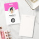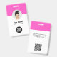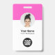 Personalice fácilmente este distintivo de nombre de empleado Minimalista de la empresa del Personalizado con foto, código Qr de escaneo o código de barras de escaneo y logotipo de la empresa. Un sencillo diseño de negocio con foto redonda, en coloridos colores fuchsia rosa y blanco, personalizable completo en frontales y traseros, sans-serif, fuentes básicas y modernas y un aspecto profesional y claro. Disponible con patio, clip metalizado o retráctil. Sin orden mínima.