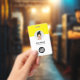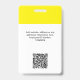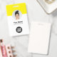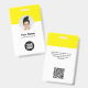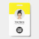 Personalice fácilmente este distintivo de nombre de empleado Minimalista de la empresa del Personalizado con foto, código Qr de escaneo o código de barras de escaneo y logotipo de la empresa. Un sencillo diseño de negocio con foto redonda, en colores amarillo y blanco completamente personalizable en tamaño delantero y trasero, sans-serif fuentes básicas y modernas y un aspecto profesional y claro. Disponible con patio, clip metalizado o retráctil. Sin orden mínima.