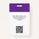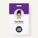 Personalice fácilmente este distintivo de nombre de empleado Minimalista de la empresa del Personalizado con foto, código Qr de escaneo o código de barras de escaneo y logotipo de la empresa. Un sencillo diseño de negocio con foto redonda, en colores morados y blancos, personalizable completo en tamaño frontal y trasero, fuentes sans-serif básicas y modernas y un aspecto profesional y claro. Disponible con patio, clip metalizado o retráctil. Sin orden mínima.