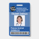 Simple y moderna insignia vertical personalizable para personal médico con logotipo personalizado, código de barras, foto, nombre y dirección. Creado para centros médicos, hospitales y centros de salud. Los colores principales de esta plantilla profesional: azul y blanco.