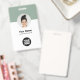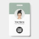 Personalice fácilmente esta Tarjeta de identificación de empleado minimalista y personalizada con foto, escanee el código Qr o el código de barras y el logotipo de la empresa. Un diseño empresarial simple con foto redonda, en colores verde sage y blanco totalmente personalizables en tamaños delanteros y traseros, fuentes básicas y modernas sans-serif y una apariencia profesional y clara. Disponible con cordón, clip de metal o con retractil. Sin pedido mínimo.