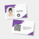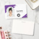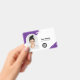 Personalice fácilmente esta placa de identificación minimalista y abstracta con trazo de pincel creativo para empleados de negocios horizontales personalizados con foto, código QR o código de barras y logotipo de la empresa. Un diseño empresarial simple con foto redonda, en colores púrpura y blanco, con forma de foto en arco, totalmente personalizable en tamaños delanteros y traseros, fuentes básicas y modernas sans-serif y un aspecto profesional y claro. Disponible con cordón, clip de metal o retráctil. Sin pedido mínimo.