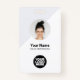 Personalice fácilmente este distintivo de nombre de empleado Minimalista de la empresa del Personalizado con foto, código Qr de escaneo o código de barras de escaneo y logotipo de la empresa. Un sencillo diseño de negocio con foto redonda, en tonos grises y blancos, personalizable completo en tamaño frontal y trasero, fuentes sans-serif básicas y modernas y un aspecto profesional y claro. Disponible con patio, clip metalizado o retráctil. Sin orden mínima.