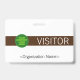 Este elegante diseño de placa presenta el mensaje "VISITOR", y el nombre de una empresa personalizable u otro mensaje personalizado. Una insignia como esta podría ser usada para identificar que alguien en un lugar de trabajo o negocio es un invitado/visitante autorizado. [~Z0000307]
