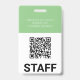 Banda QR de empleado de negocios verde de tarjeta de identificación moderna, logotipo en blanco.