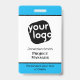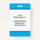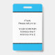 Esta elegante placa de conferencia es perfecta para cualquier empresa que desee darle a su personal un aspecto individualizado con textos y colores personalizados. El diseño tiene un fondo azul, negro y blanco que también se puede personalizar fácilmente.