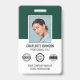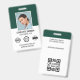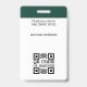 Crea un aspecto profesional con esta elegante placa de identificación. Una plantilla sencilla personalizada con su foto de identificación, nombre, cargo, logotipo de la empresa y símbolos de acreditación. Los detalles de devolución están en la parte posterior, junto con información adicional, y un código de barras o código QR. Personalizar el texto para que se adapte a su negocio. Ideal para muchos lugares de trabajo diferentes, incluyendo profesionales corporativos, consultores de negocios, trabajadores minoristas, personal médico y más. Colores impresos: verde muy oscuro, negro y blanco.